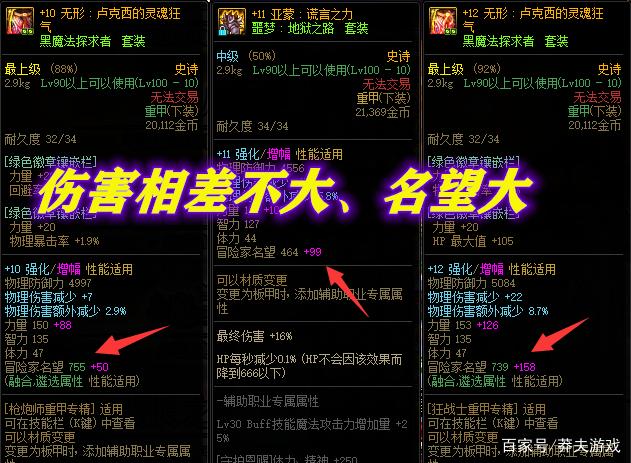 “增幅”带来的伤害提升,其实并不大,一身红11和一身红10的区别甚至不到3%,吃奶差距更小,但为什么大家还前赴后继去增幅呢,主要还是“排面”的问题,一件红10加50名望,红11加99,红12加158,这才是最大的差距!