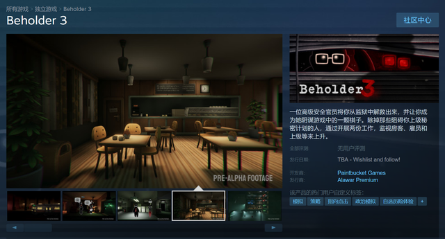 目前,《旁观者3》(Beholder 3)已经上架了Steam商城,并公开了PC系统配置需求。该游戏的计划发行日期尚未公开,不过根据之前的消息,将于2022年发售。
