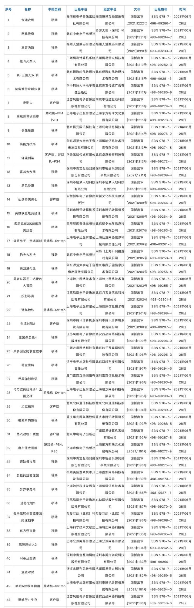 时隔四个多月,昨天国家新闻出版署正式发布了2021年最新一批进口网络游戏审批版号信息。在这43款新获得版号的游戏中,手游的数量多达30款。