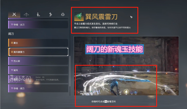 二测阔刀的新技能!在这次二测中,阔刀还被添加了一个,新魂玉技能,名为巽风震雷刀,可以根通过平击的三段蓄力释放,整体的伤害非常高,而且还能控制方向,对周围的多个敌人进行攻击,简直就是团战方面的搅屎棍(如果队友也有的话,那就是双倍的快乐),唯一的缺点,就是太难刷出来了,不然有概率能与太刀的噬魂斩比肩,所以玩家们在日后看到它的话,可一定要转完阔刀哦。