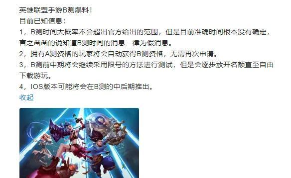 在英雄联盟手游国服公测时间并没有敲定的情况之下,不少观众们也是将目光转向了英雄联盟手游国服即将开启的第二轮内测,也就是常说的英雄联盟手游国服b测,因为按照国际服之前的路线来讲,在b测结束之后,公测就会紧接而至,所以只要英雄联盟手游国服b测来临,那么也就意味着公测时间肯定就不远了,这就是为什么这段时间在各大论坛上b测讨论度如此之高的一大原因。