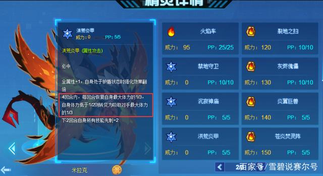 洪荒炎甲(强化)标准的公式技能,强化+回血+先制的标准套路技能,基本就是回血用的技能。