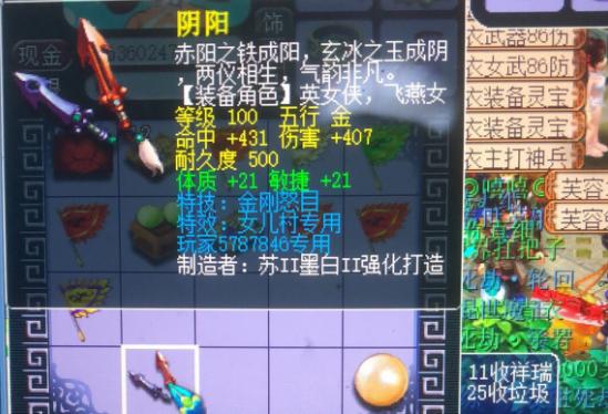 虽然物理系的梦想肯定是专用的,专用不一定是物理系的梦想,上面的这位玩家就鉴定出来了一把非物理系梦想的专用武器,不过这把武器也是有用的,因为这把武器的伤害属性达到了407,增加了21点体质和21点敏捷,他完全可以给固伤门派的玩家使用,而且金刚怒目特技也特别有用处,可以将自己的愤怒转移给其他人,让其他人在第一个回合就可以放大特技。