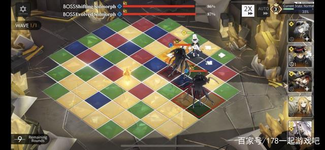 第二回合直接原地待机,左上的boss会往后走技能打不中。第三回合等右下boss掀完地板往左下走一格。