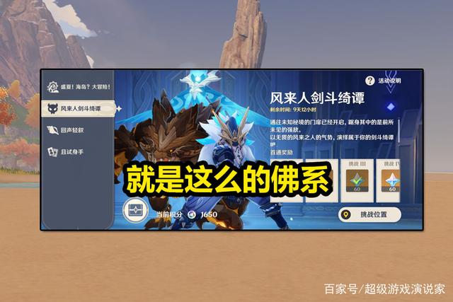看到这个话题的时候,可能很多人都不相信,魔偶剑鬼似乎没有这么弱。放在大地图之中,原神中的魔偶剑鬼确实很强。可是只要将挑战因子,调到最简单的状态,10秒内通关只是分分钟的事情。虽然有2个分身的存在,但血量却大幅减少,攻击力也是弱的可以。可能看到这里,有些原神玩家会产生疑问,和副本积分挂钩的奖励,难道都不要了吗?对于佛系玩家来说,“风来剑”活动中最诱人的,还是每个阶段的60原石,至于摩拉、天赋书这样的存在,都可以通过消耗体力获得。站在这个角度来说,只是拿完原石奖励走人,并不是无法接受的事。