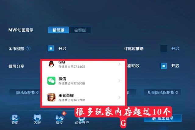 经过我的了解,发现很多的玩家手机里面王者荣耀这款软件占到的内存都在10个g以上,有个别玩家甚至突破了15个G,也就是说每次进行更新的时候,都会让王者荣耀这款游戏变得越来越大,对于那些手机内存比较大的玩家,可能没有什么影响,但是对于大多数玩家而言,内存太大的话,想要一直玩王者荣耀,就需要把其他的软件卸载,因为等到版本更新的时候,内存不够是没有办法更新的。