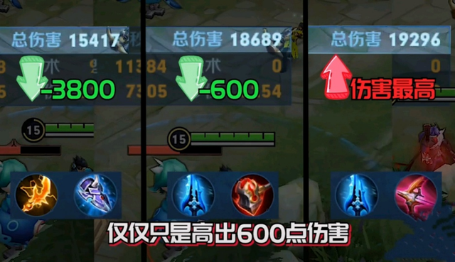 想要知道马可究竟是变强还是变弱,首先要对马可的打法有基本的认知和了解。这个英雄真正强势的点在于其“真实伤害”以及拉扯能力,同时还佐以极高的容错率,改动后的马可更加看重一技能的输出,不再过分依赖法球效果加持的装备(下图中的三组装备伤害测试对比,电刀冰痕已被彻底淘汰),而是对基础AD更高的装备产生了新的依赖。