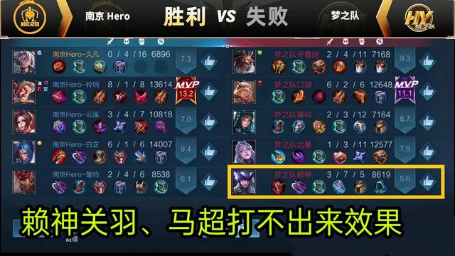 还有就是赖神需要解决的问题就是战边英雄池,虽然说关羽和马超都是国服,但是在赛场上拿出来效果不好,只有老夫子能够勉强成为梦之队拿手的战边体系,甚至北慕在比赛当中都开始说赖神的其他战边玩的不好,梦之队四核体系只有老夫子一个等类似话语。