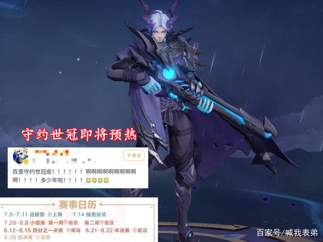 除了大乔的白鹤梁皮肤知晓特效公布时间之外,其实还有一款新皮肤的特效也即将就要得到公布了,而这款皮肤则就是世冠系列的第三款皮肤。不过,皮肤特效在公布之前肯定是要进行预热的,所以按照KPL官方那边给出的世冠最新赛程来看,在7月5号开启的选拔赛期间,属于百里守约的这款世冠皮肤应该就会得到预热,那么特效的公布,肯定也就快了,7月这个月玩家肯定是能够拥有到这款皮肤的,毕竟前两款世冠系列的皮肤可都是在7月上线的,显然这款应该也不会例外。