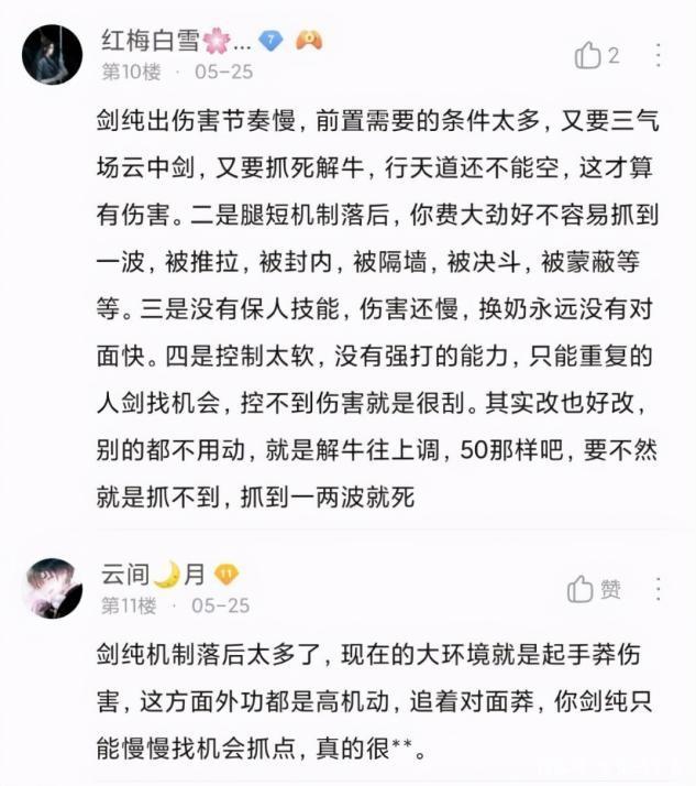 在这个赛季当中,来自剑纯玩家们的意见非常大,其原因便在于剑纯是出场时间最长的门派之一,在最近几年当中,竞技场的生存体验一直不容乐观。