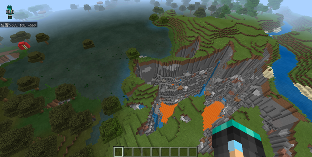 这个地图种子可就有意思了,沿着一条岩浆大峡谷,两边的山崖完全呈对称状往远处延伸,而每一节的峡谷,形状也一模一样,就像是每一节都在重复前一节峡谷的样子,这样的重复地形,在一般的地图里可是很难找到的。