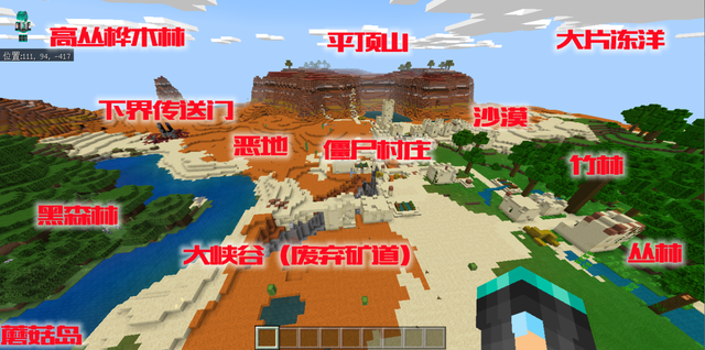 而以这片恶地为中心,超多的生物群系如冻洋,黑森林,沙漠,丛林等,呈散发状向外延展,在这么小的区域里,有这么多的特殊生物群系就代表着,在这个种子地图中,可以轻易获得超多特殊群系才能获得的材料!