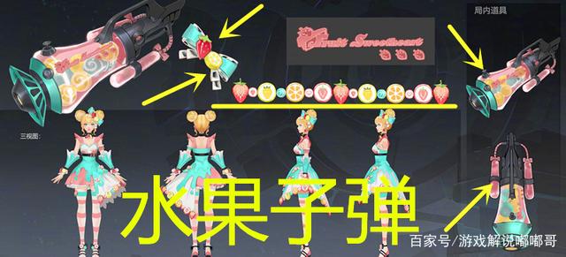 优化之后的头部发型依然是丸子头,但是加入了水果的装饰品,并且面部看起来更加的可爱了,搭配黄色的头发,看起来非常的萌,服饰颜色以粉红和青色为主题,碎花裙子还有水果的图案,非常切合皮肤的主题,并且这款皮肤打出的子弹会以水果的形式展现出来,武器直接优化成了糖果机器,整体来看这款皮肤建模还是不错的,孙尚香直接化身萌妹,估计上线之后会受到不少女玩家的喜欢。