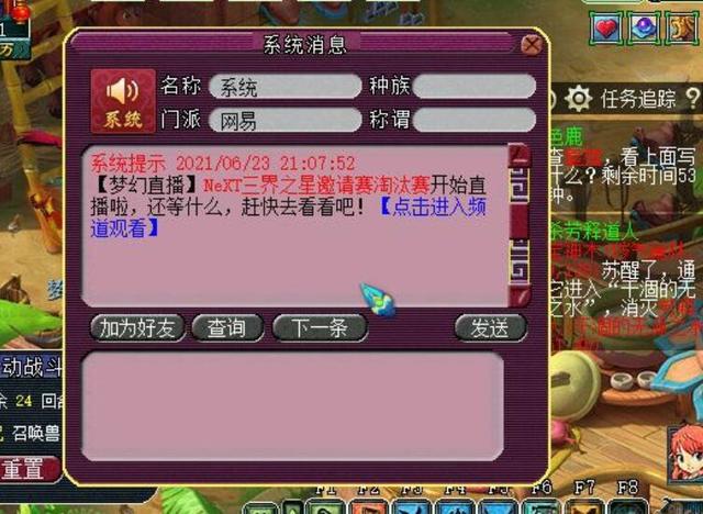 相信各位玩家在最近这几天应该都饱受系统消息的骚扰吧!大家收到的都是上面的这种消息,就是某某邀请赛的直播观看提醒,或许有很多玩家想着退订该系统提醒,但是小编要告诉大家一个比较悲伤的消息,因为该提醒是没办法退订的,梦幻中所有的玩家都只能被动的接受,应该算是一个霸王条款,而且在官方每次上线PK类活动玩法的时候都会有这样的骚扰消息。