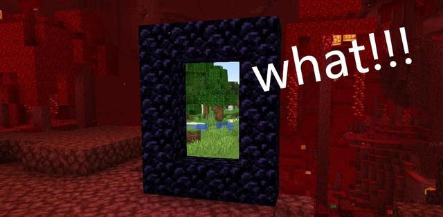 一个可以让《我的世界》主世界和下界、末地持续加载的模组(我们此前介绍过),并且可以实时的看到另一个世界的入口。所以这是没有PS也可以形成的真实画面。