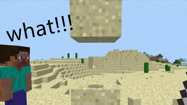 用最快的效率V的挖掘铲,迅速铲去沙子方块。会做到趁上方沙子不注意的情况下,形成浮空沙!(好吧,我承认这是在忽悠)其真正的原理,不过是在撸掉方块的瞬间,截下一个画面罢了。当然,所谓的屏障方块,隐形基岩也可以做到这一点。