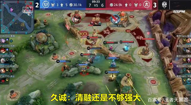 Hero和TTG这场总决赛可以说是跌宕起伏,前面几局Hero优势明显,又被TTG连追两局拖入了巅峰对决。其中比赛的第六局Hero给清融拿出了干将莫邪。因为TTG清清选择了露娜,干将莫邪这个英雄比较笨重,发挥空间也不大,清融这局打得没什么存在感,也就输掉了这一小局。