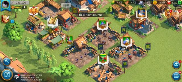 还有对于军队训练,将弓箭手、骑兵、步兵以及装备的制造放在一起,这些属于军事类建设,所以他们可以同时进行训练,得到一定的兵种战斗力;而军队建筑的背后就是第四块领域,像酒馆、商栈等建筑可以放在这里,这样不仅操作方便,而且看起来也美观,省下来不少空间位置,你们是怎么安排的呢?