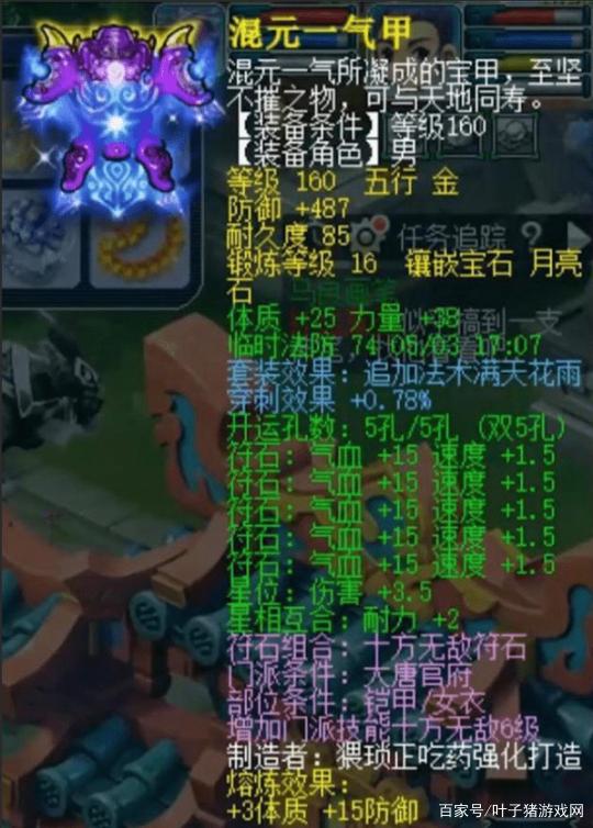 16锻月亮石,502防御,体质加28,力量加38,满天花雨套。