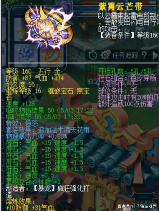 16锻黑宝石,防御97气血405,满天花雨套装。