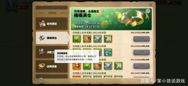 前言:《万国觉醒》是一款策略型养成历史手游,在游戏中各种行动都是以食物、石材以及岩石等资源为基础的,没有充足的资源的话真的寸步难行。我们在《万国觉醒》中获取资源的方式除了主动收集之外,通过参加《万国觉醒》官方提供的活动也可以获得大量资源,每日坚持完成一轮的话,可以获得百万资源量。这次我们就聊聊哪些活动值得我们参与。