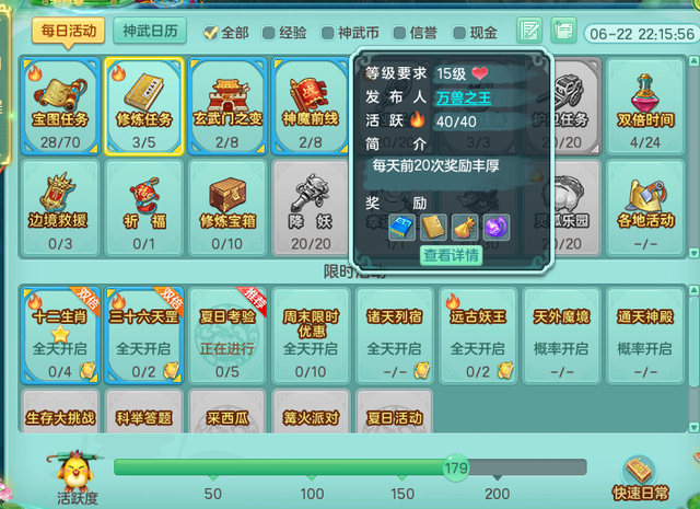 除了以上产出较为固定的几个任务,像其他零碎的任务也能有不少神武币的产出。
