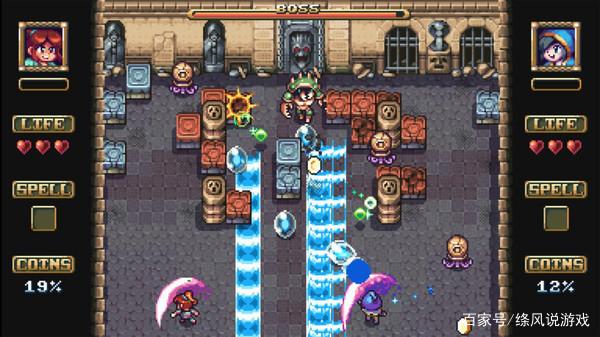 其次是道具,在击破敌人的时候会掉落各种途径的道具,道具有三种类型,前两种分别是给人物或者弹球附加状态的道具和占用道具栏的主动释放的道具,第三种算是一种收集要素吧,就是一张符卡,通过击中场景中随机出现的宝箱获得,直线弹道射出,需要射中敌人,然后就可以捕获它解锁收集挑战,虽然这个教程里面说的咒语道具我是不知道指的是不是这个,具体道具作用就不详谈了,很容易就能摸索透彻。