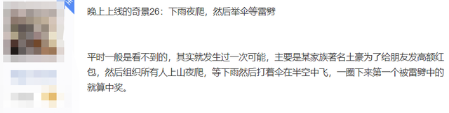 2.《戏说电子竞技_网游土豪多任性?要求家族成员雨天集体上山 被雷劈中给2000红包》仅供读者参考,本网站未对该内容进行证实,对其原创性、真实性、完整性、及时性不作任何保证。