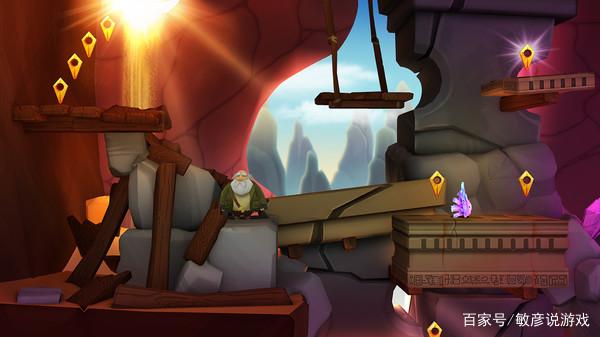 本作的玩法是比较经典的平台跳跃玩法。玩家需要操作主角老爷爷在横版场景中通过行走、跳跃、攀爬更一系列动作来闯过一道道关卡。