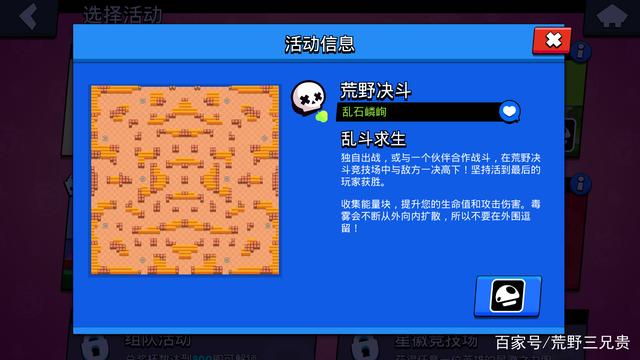 2.《荒野三兄贵_5分钟带你玩转《荒野乱斗》吃鸡能量图》仅供读者参考,本网站未对该内容进行证实,对其原创性、真实性、完整性、及时性不作任何保证。