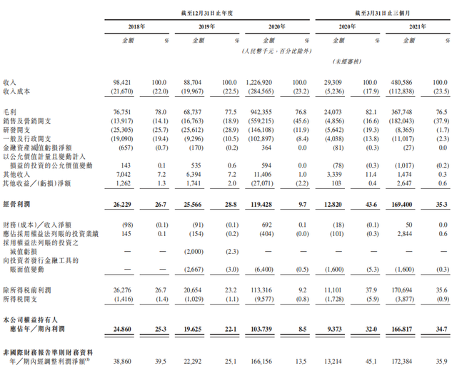 步入2021年后,公司依旧保持较高的营收增速。招股书显示,今年一季度,公司营收达4.81亿元,特别是在净利方面,一季度净利润为1.67亿元,超出去年全年净利总和。
