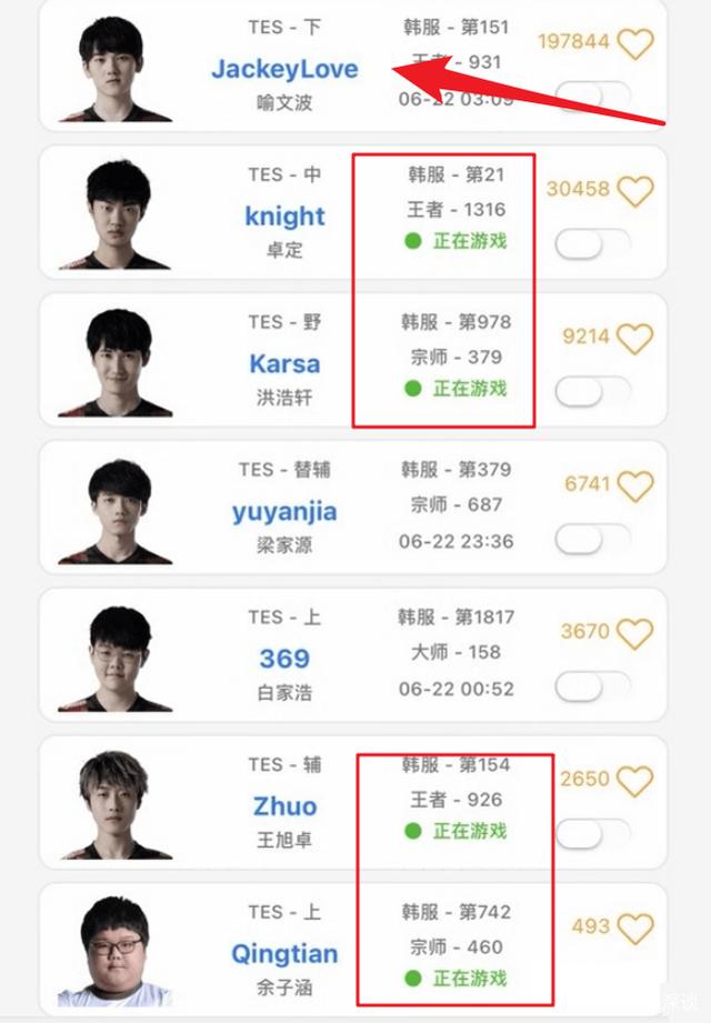 值得一提的是,在TES战队输给RA战队之后,估计选手们也是对这次比赛的结果非常难以接受,所以首发阵容的其他四位选手,比赛结束之后就立马开始加练,开始排位来提升自己的状态,仅仅只有Jackeylove自己没有在线。