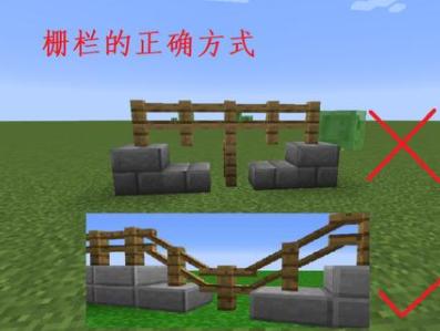 于是就有了图片中的逼死强迫症的那一幕,半砖加栅栏当时的我咋就那么傻呢。上方的栅栏始终无法碰触到下方的半砖,这样就很难受。直到小黑看见了它,让我明白了玩家们的想象力有多大!