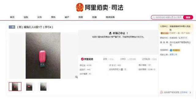 一天以后,6月22日,一个估价50元的U盘竞价至近4万元,而后拍卖再次中止。