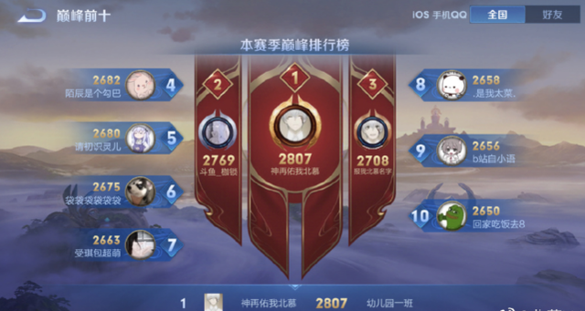 终于,巅峰赛的入口如约关闭,最终北慕凭借近2600分的成绩坐上了巅峰第一的宝座,通过直播我们也不难看出,北慕取得巅峰第一后是相当开心的,在直播中当众和好几个朋友语音通话报喜。