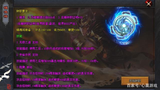 自动完成转职.并且直接修炼新技能,此类新技能都是屌丝逆袭土豪之技能.