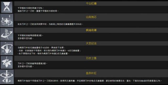 这个天赋对于万叶来说是当副c最核心的天赋了,我粗浅算了一下,拿四星铁锋刺的万叶带元素精通四风套不考虑副词条的情况下元素精通能到822,能够给队友提供32.88%的元素伤害加成,何况我们副词条还能歪出不少精通,如果精通能叠到1000,那他就能给队友提供40%的元素伤害加成!!