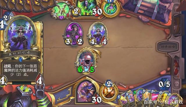 减费后的随从可以更早的上场,比如说吞噬者,对面下魔钢,可能是站场也可能是准备下审判者,所以我们在5费就能开吃,没吃到也不要紧,对手手牌减1也不亏。