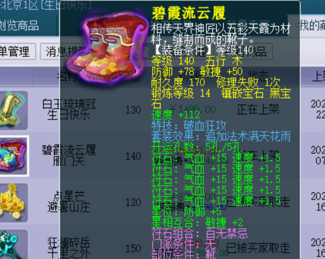 黑宝石涨价20%,这件事已经成为大家热议的话题了。低等级的宝石看起来只涨了2万梦幻币一颗,可是到高等级就真的不得了。随之而来的就是镶嵌黑宝石的装备,价格也自然上涨了。这次来看的这双鞋子,就是非常不错的。