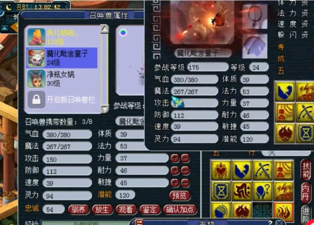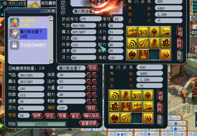 技能要做成连善,那么肯定是缺少高级必杀的。这个技能还是很重要的,任务能增加的输出很高。这只宝宝的特色肯定是造型,有嗜血追击也算加分了。