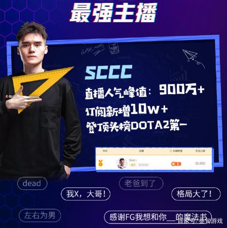 Sccc也借助着虎牙直播成功拿下基辅AniMajor特锦赛独家版权的机会,一举成为了《DOTA2》版块屈指可数的顶流主播。