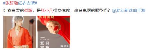 之前张哲瀚代言《梦幻新诛仙》的消息一出,很多人都纷纷猜测张哲瀚是不是要扮演诛仙中的男一张小凡,之后(《梦幻新诛仙》)官方便放出红衣代言人的预告海报,打消了网友的猜想。