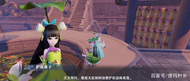 至于绿衣青莲妖尊,其实锦鲤山庄就已经有了彩蛋:山庄深处有一个很小的莲花池,那里的护卫小妖说她是受庄主所托守护这株青莲的,而且青莲也快要开花了……所以要解锁青莲妖尊NPC,大家就要在周三和周日去点亮花海,成功点亮就可以领取绿衣阿瀚啦。
