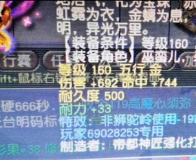 就在近日,主播梧桐直播的时候有位玩家发来了一把武器。这是一件160级新出的专用宝珠,伤害692已然是超越系统上限了,命中744、单加33耐力能熔炼到39。打16锻玛瑙石,这把武器的综合总伤可以达到1103!这样的属性可谓是非常极限的了,号主直接叫价200万。因为在同类型的1100伤男武器里,都没有低于200万成交的。可是,当前版本的魔族物理狮驼岭并不是非常强势,所以魔族武器没有枪扇贵,小编认为能卖到150万就非常不错了。