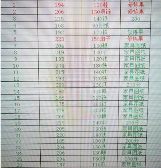 在梦幻中有很多玩家会通过跑宝宝环的方式来赚钱,但是在宝宝环中能够赚钱的就是获得150级的奖励,只是在宝宝环中获得150级奖励真的没有大家想象中的那么简单,上面的这位玩家统计了26次100环宝宝环的结果,在这26次宝宝环中仅仅只有一次获得了150级的奖励,而且还是扇子,剩下的那些奖励中,要么是不值钱的制造指南书,要么就是低等级的百炼精铁,基本上都是亏钱的。