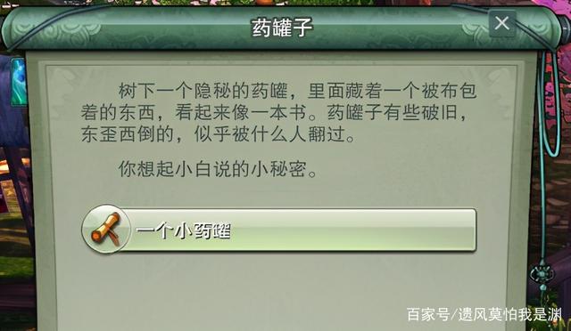 回到村里,找到小白后,就引出了第三个彩蛋,这个任务是在小白面前的大树下的陶罐里,这就是莫雨让小白藏的空冥决。
