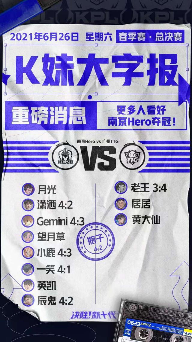 大家期待已久的KPL总决赛就要开始了,按照惯例开赛之前各大解说都会对比赛进行预测,这一次也不例外。有超过12位解说对本次的总决赛进行了比分预测,结果又呈现了一边倒的形势,看好TTG战队获胜的解说只有三位,看来还是Hero战队的呼声更高一些吧,不过这反倒让Hero的粉丝们不安心了,“大热必凉”的魔咒他们扛得住吗?
