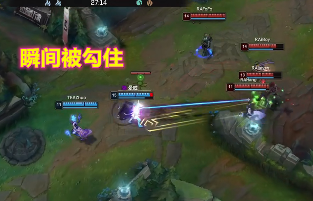 正当阿水以为脱离危险之后,RA的辅助选手hang,蹲在中路河道处,直接一个钩子抓住了阿水,刚刚点完赞的阿水,此时直接被一顿暴揍,然后送掉了。因为阿水的这一波死亡,导致RA破掉了中路的高地塔。所以说阿水这一波操作,真的非常的致命。