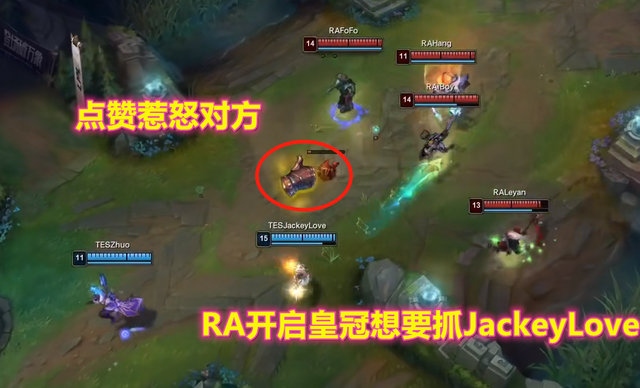 而TES这边,则是拿到了卡尔玛+伊泽瑞尔这样的组合。这一套组合可以说是当前下路最强的组合了。能进能退,而且还是由JackeyLove亲手操刀。可是没想到,在比赛当中却出现了戏剧性的一幕。阿水在中路清兵,RA想要开皇冠抓他。但并没能抓到阿水,在这之前阿水甚至还点了个赞。