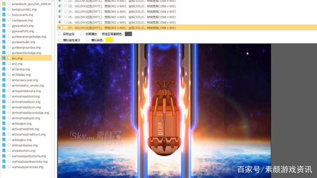 例如用EX打开男大枪的三觉文件,可以看到的是,男大枪三觉的每一个动作和特效都能在这里面找到对应的图片,用方向键滚动图片就可以呈现动画效果,也就是我们在游戏中所看到的技能演出。
